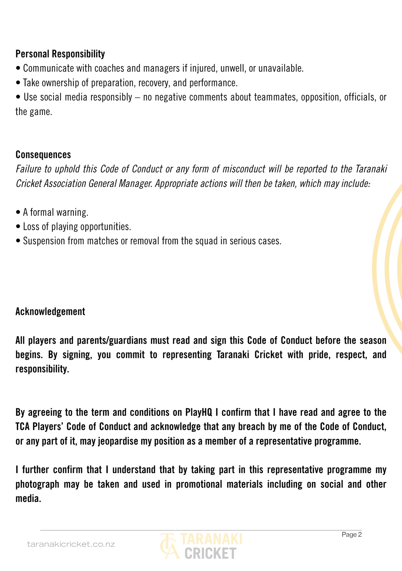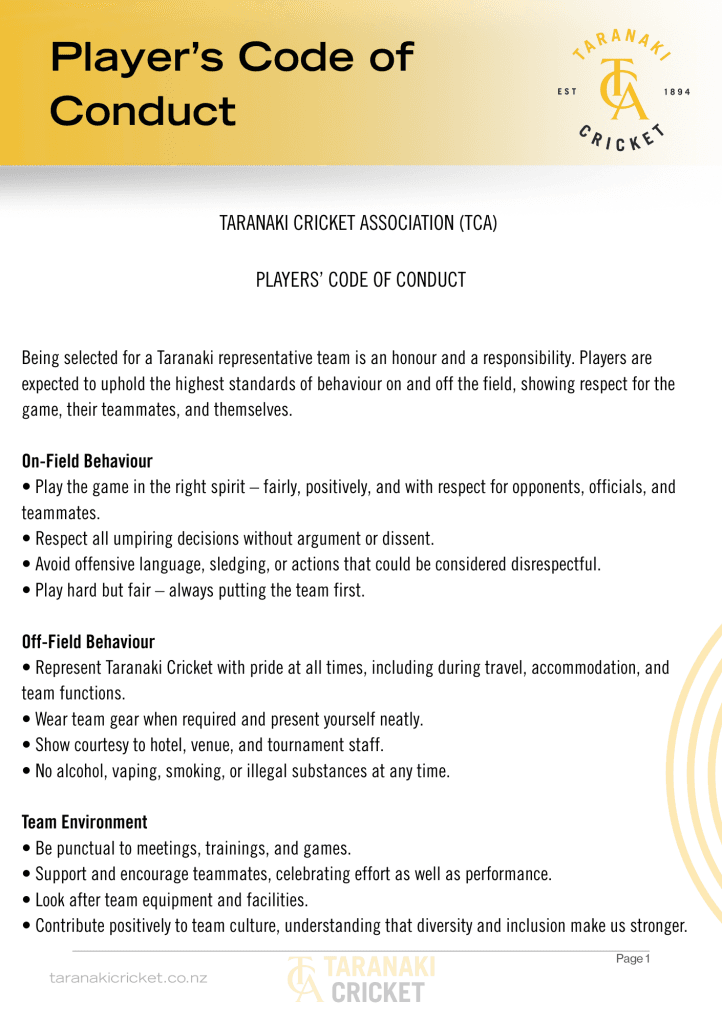 Please see the junior representative code of conduct. By agreeing to the terms and conditions on PlayHQ you are agreeing to our code of conduct.**Please note it is 2 pages**
