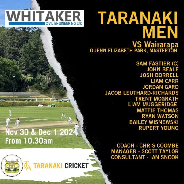 Replacing Robinson at the start of the innings is Josh Borrell, previously with a score of 46 under his belt against Hawkes Bay, and in for Logan is Jacob Leuthard-Richards, fresh off a winning captains knock for the Taranaki development team against Manawatu. Leuthard-Richards inclusion will give even greater batting depth to a side already packed with talent.